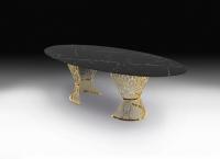 • TAVOLO GATSBY - BASE ARABESQUE FINITURA ORO 24K - TOP IN MARMO EMPERADOR DARK