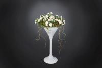 Composizione floreale grande su vaso moderno alto di design, ideale per l'arredamento della casa e l'arredo di alberghi, hotel, bar, ristoranti, spa, discoteche, ville, oltre ad essere adatto alla decorazione e allestimento in occasioni di matrimoni ed eventi.