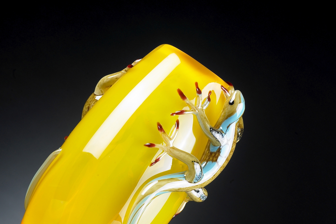 Vaso decorativo in vetro, lavorato artigianalmente da maestri vetrai.